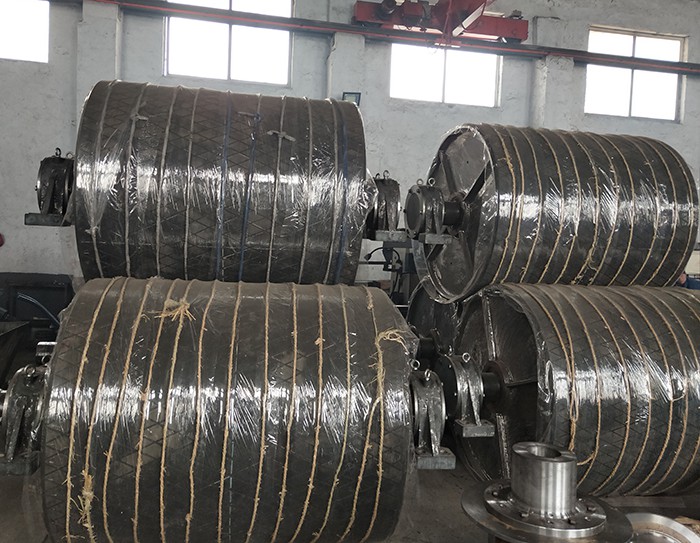 1)  鼓形滾筒。用鋼板卷圓焊接而成,中間部分筒徑大于二邊筒徑約幾毫米,目的是防止輸送帶跑偏。