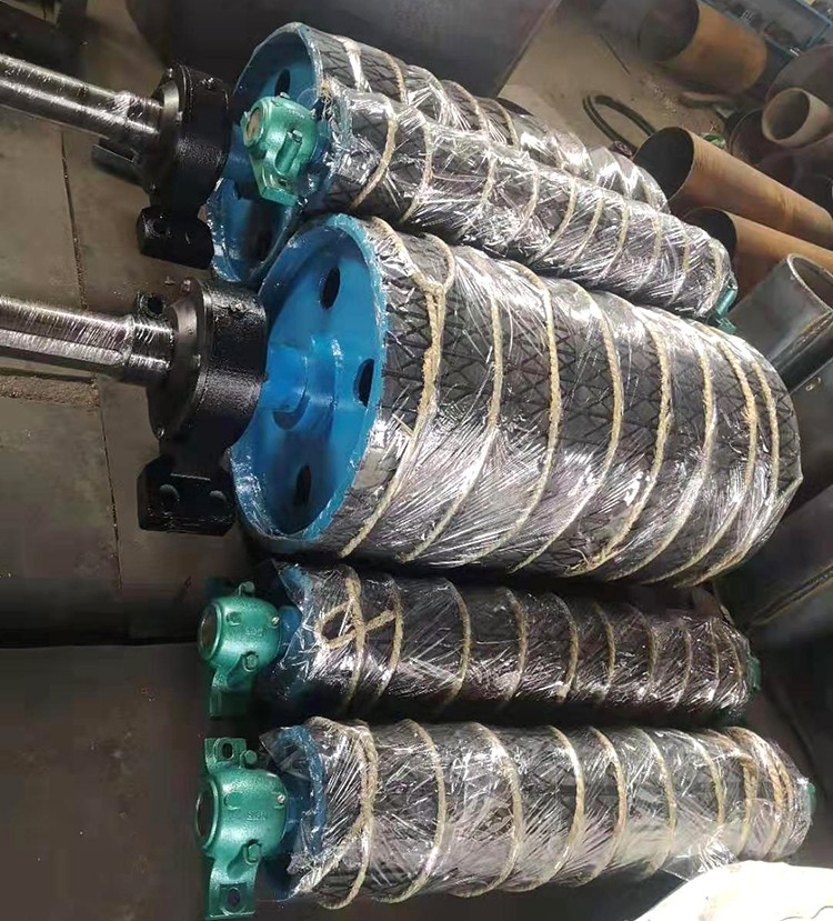 是輸送機傳遞動力的部件,表面有光鋼面,人字形和菱形花紋橡膠覆面。小功率、小帶寬及環境干燥時可采用裸露光鋼面。人字形花紋膠面摩擦系數大,防滑性和排水性好,但有方向性。菱形膠面用于雙向運行的輸送機。
