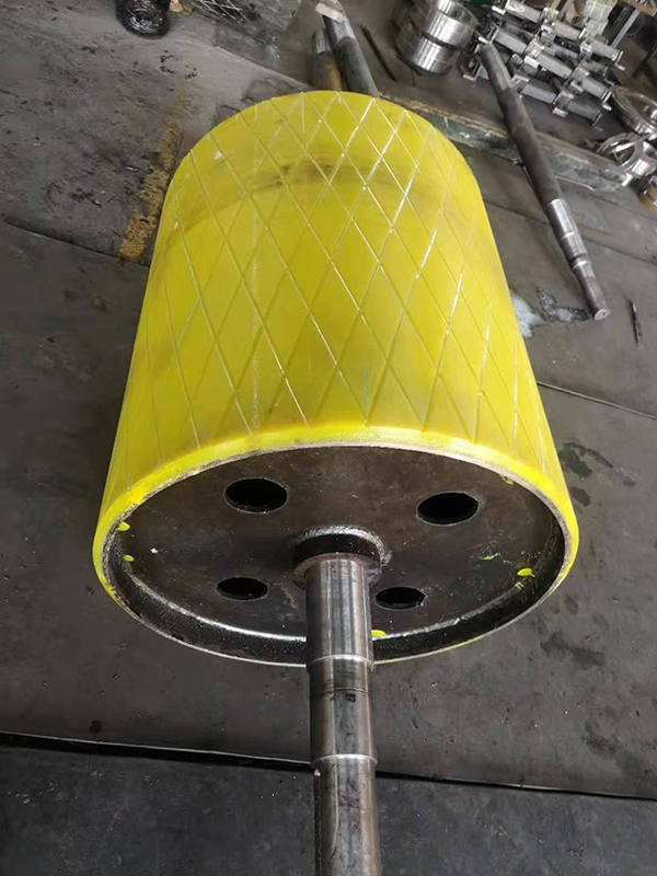 傳動包膠滾筒表面有包膠裸露光鋼面,人字形和菱形花紋橡膠覆面,小功率,小帶寬及環境干燥時可采用裸露光鋼面滾筒,人字形花膠面摩擦系數大,防滑和排水性好。但有方向性,菱形膠面用于雙向運動行的輸送機,用于重要場合的滾筒,采用疏化橡膠覆面。